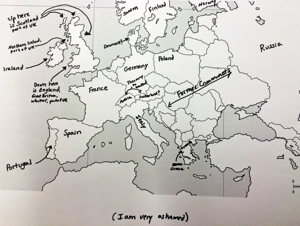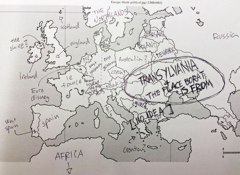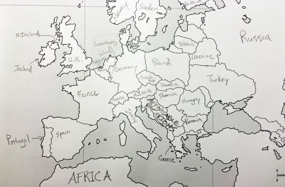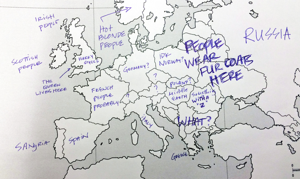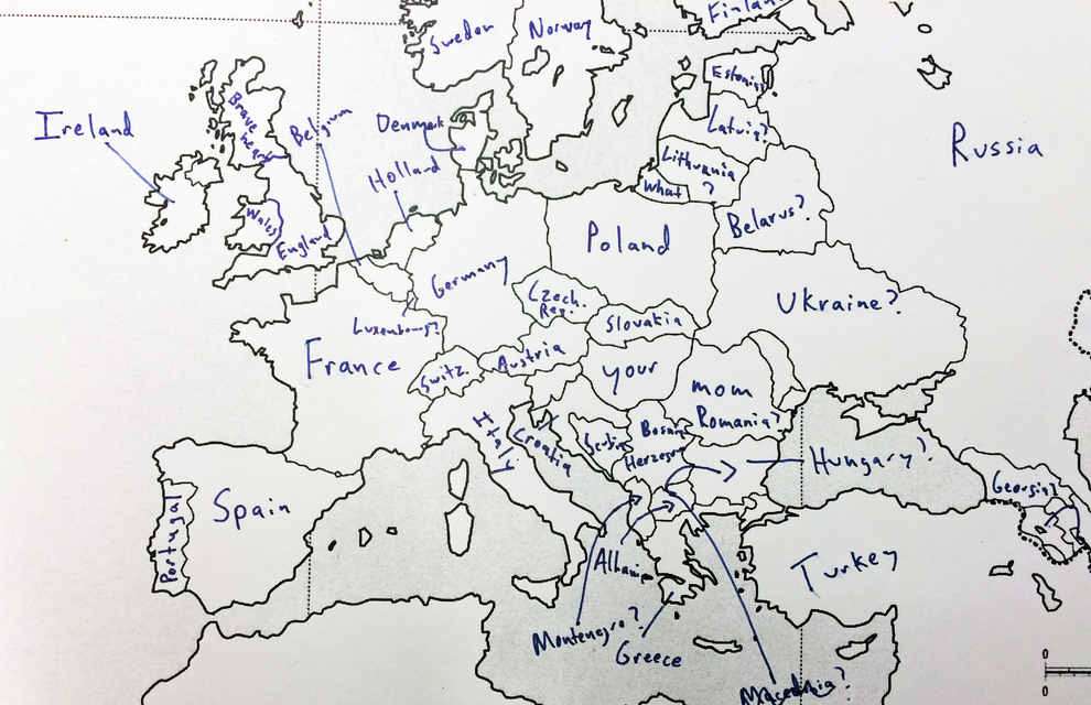 Lorsque l’on demande à des Américains de remplir une carte de l’Europe, on passe forcément un bon moment. Si la majeure partie des sondés est capable de bien placer la France (même si beaucoup pensent que la France, c’est Paris), c’est nettement plus compliqué pour les autres pays….
